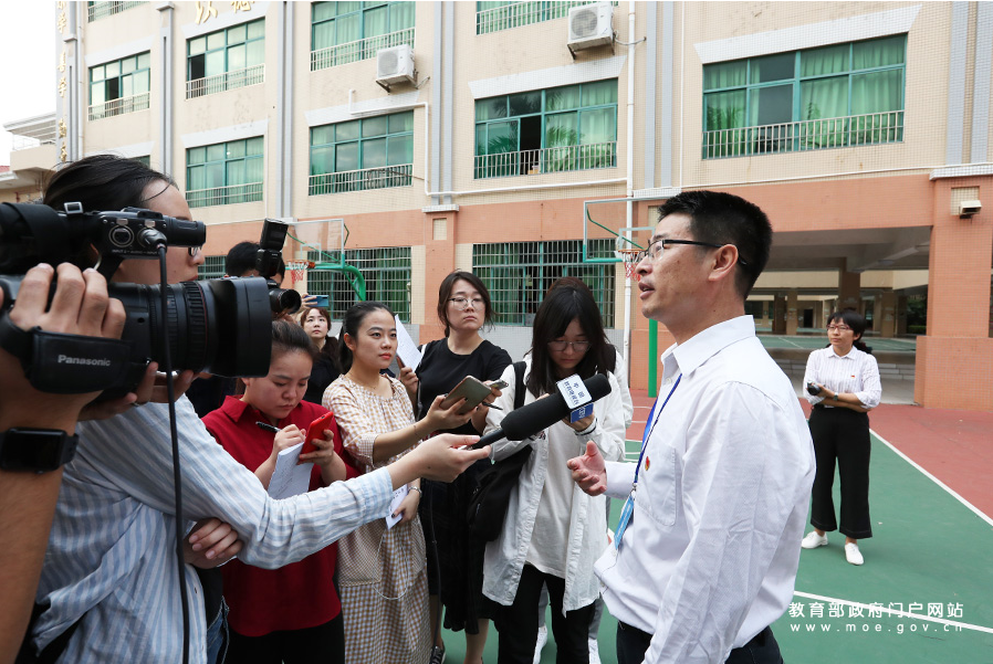 珠海市第一中學總務處負責人正在向記者介紹學校食品安全工作舉措并接受采訪。學校建立了負責人陪餐制度與家長陪餐制度,同時成立了膳食管理委員會,學生會設有生活部。學校師生員工及家長全方位配合監督食堂的正常安全運作,以保障師生安全健康用餐。(張勁松/攝 王唯 李佩/文)