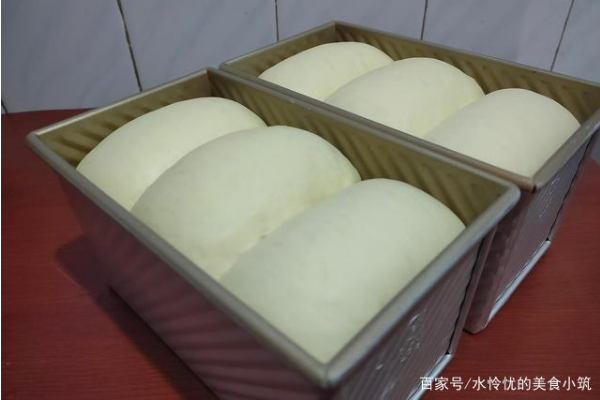 12.三個一組放入吐司盒,在烤箱內(nèi)發(fā)酵,設(shè)置38度,放一碗熱水。